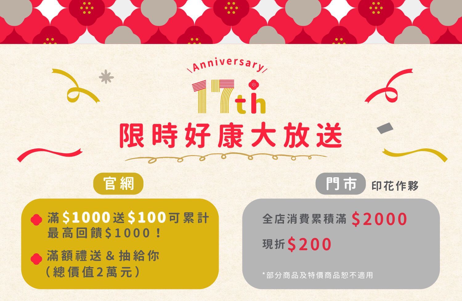 全店消費累積滿 NT$2,000,現折 NT$200! (部分商品及特價商品恕不適用)