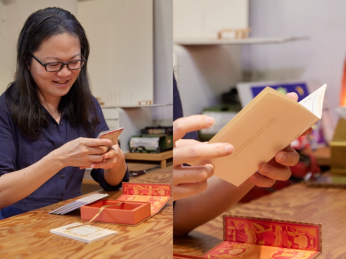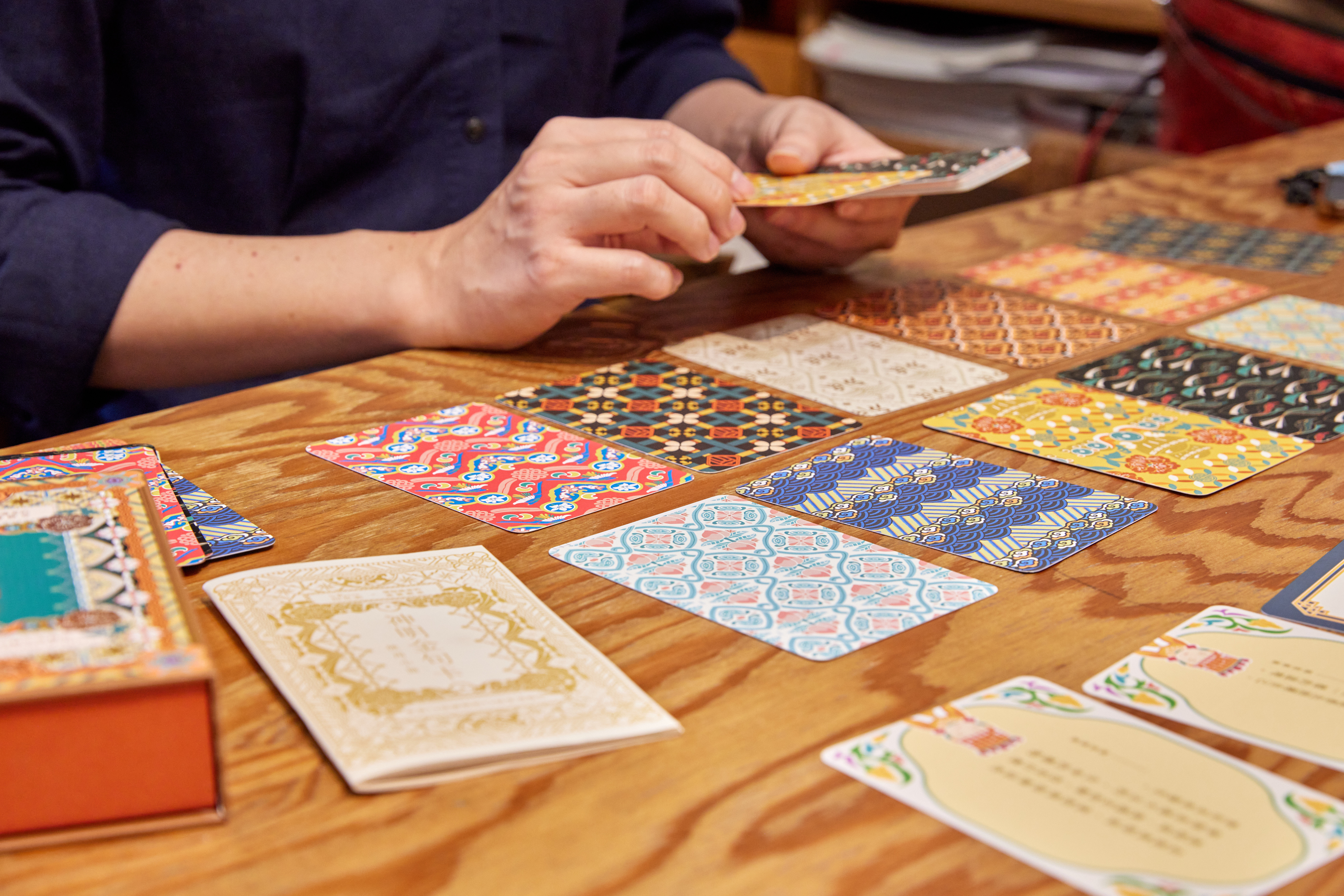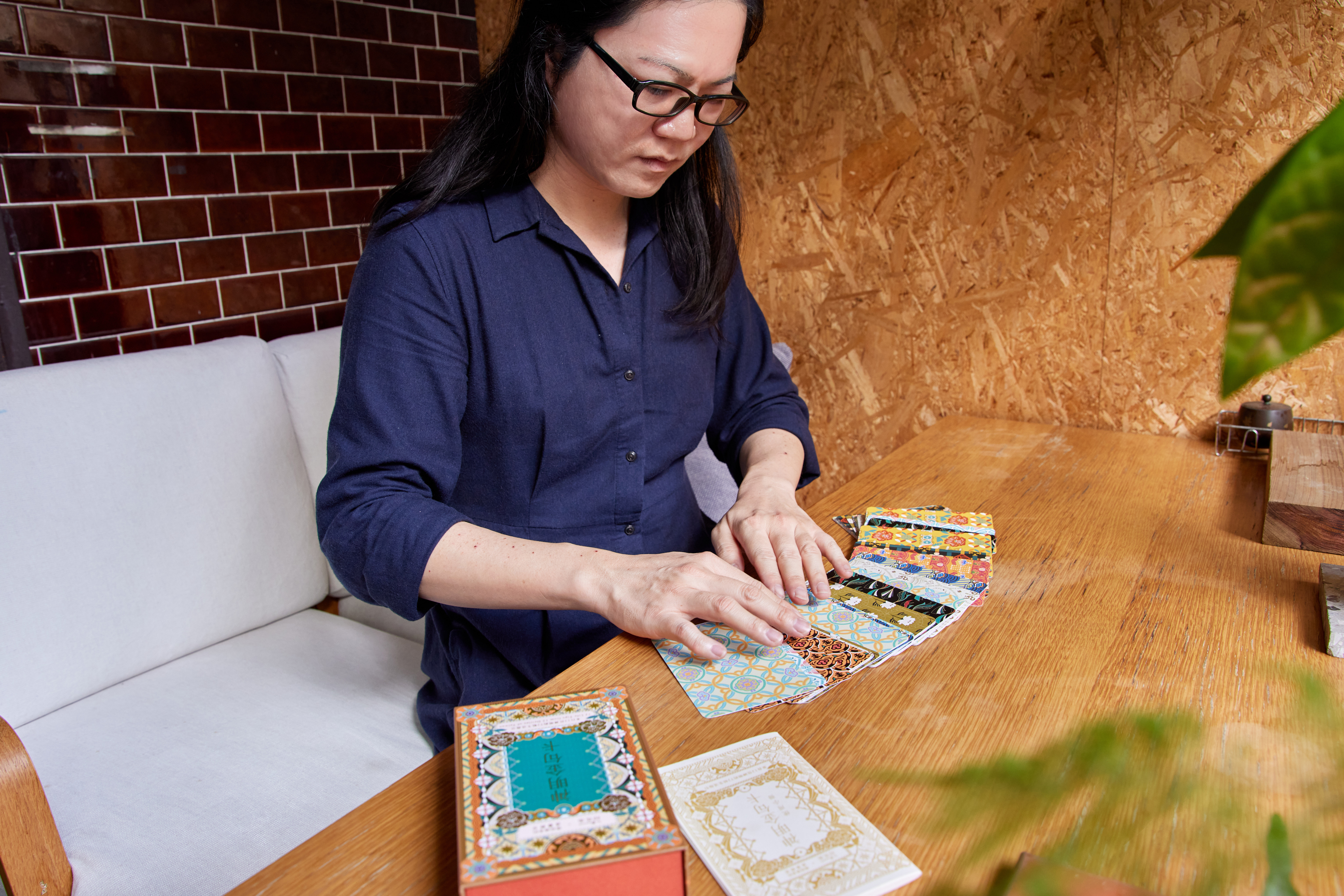 朱朱: 我非常驚艷於它將傳統元素進行了「當代的轉化」。在我的創作中,手繪線稿是靈魂;而這套牌卡則將廟宇的花窗、建築符號,巧妙地轉化為優雅的視覺語言。裡面附的小冊子,也能幫助大家更好地認識這些神明與其代表的印花。