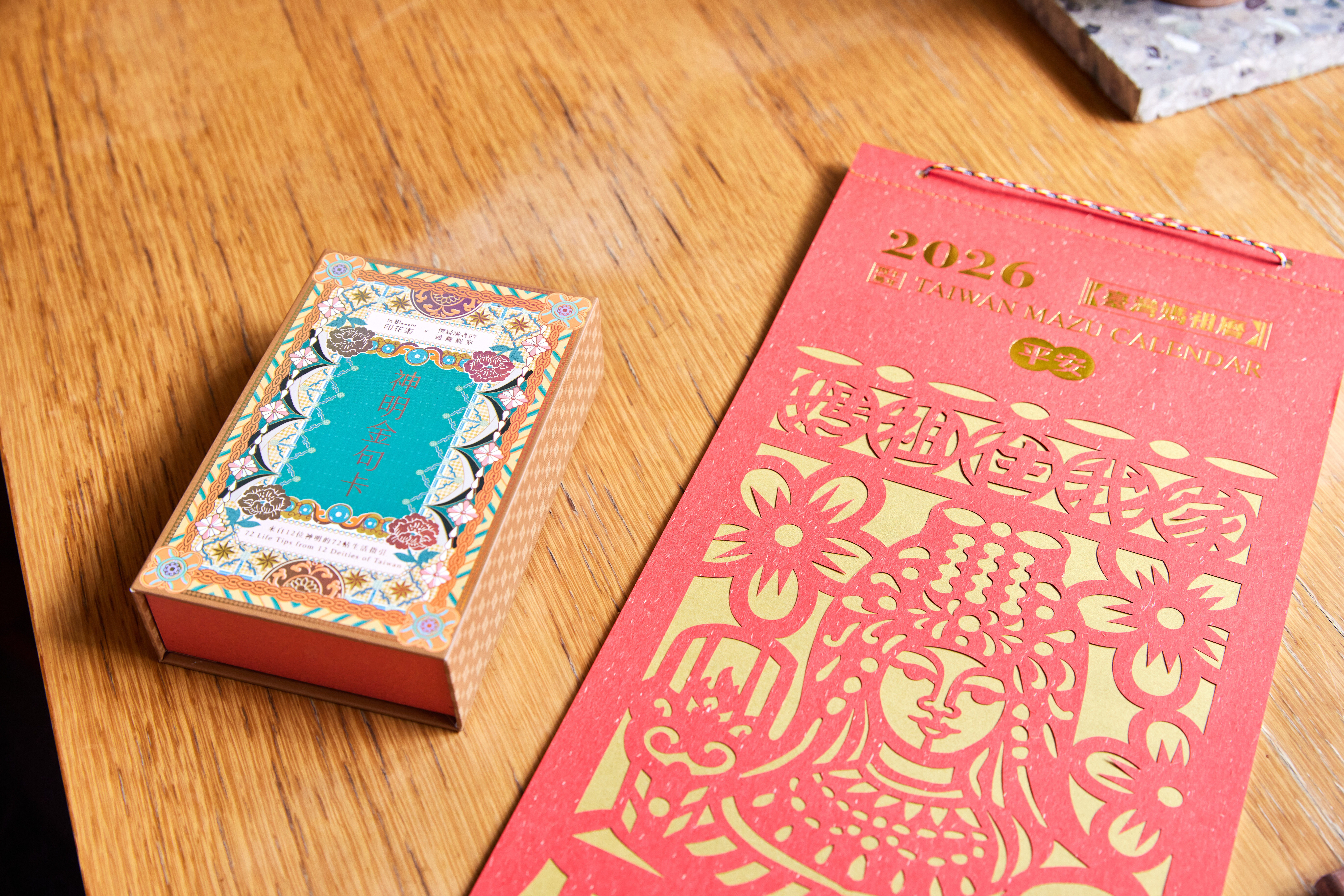 朱朱感性分享,在田野調查的創作過程中,她曾幸運地坐上爐主的車,親眼見證那份純樸的熱情。而她想記錄地就是那種珍貴的日常感。看著朱朱老師筆下莊嚴平靜的畫像,對應著《神明金句卡》裡溫潤的文字,我想在這個創作過程中,我們都在練習如何將信仰化為日常的陪伴。《臺灣媽祖曆 2026》是在時間的流逝中給予座標,而《神明金句卡》則是在空間的當下給予指引。