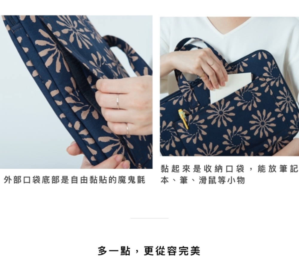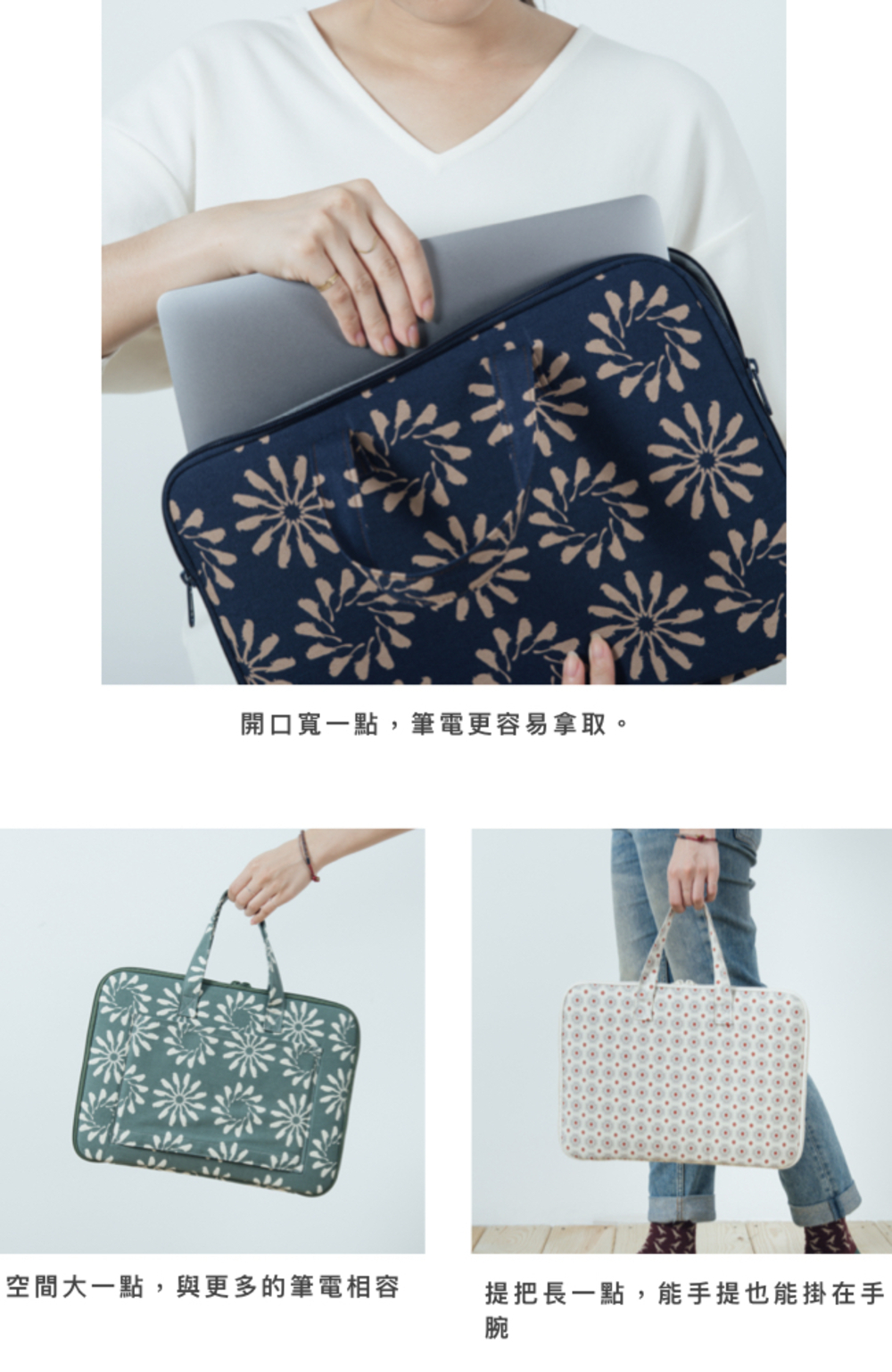 印花樂筆電包人氣推薦!搭配經典台灣印花質感設計,內襯為防撞的高發泡鋪棉,絨毛表面保護科技配件光滑的表面不損傷。適合都會男女外出辦公手提電腦包,輕巧大容量,分差旅款、機能款不同款式,可放入筆電收納設計,讓冰冷的科技配件,也能傳達出溫暖的文藝質地,成為3C日常療癒好夥伴!