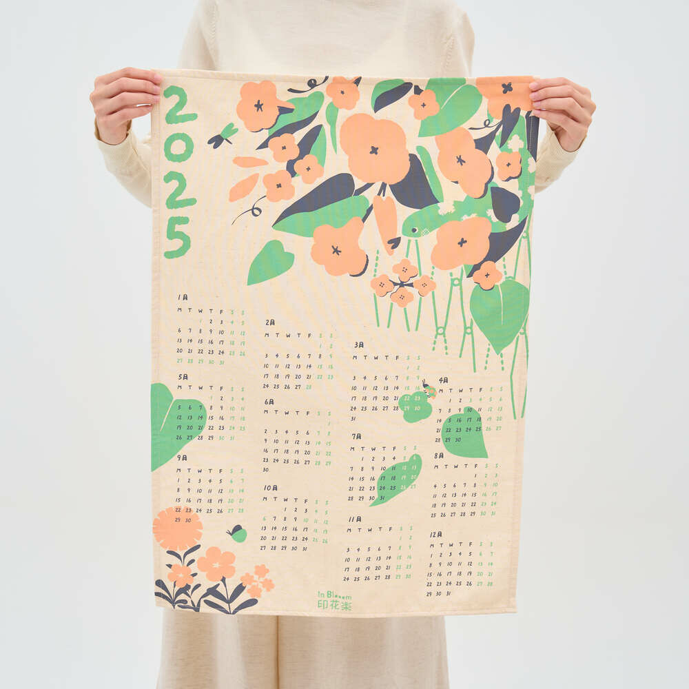 將年曆印在純棉茶巾上,是一幅溫暖的壁飾,是紀錄時間的年曆,也可以是吸水的擦拭布。