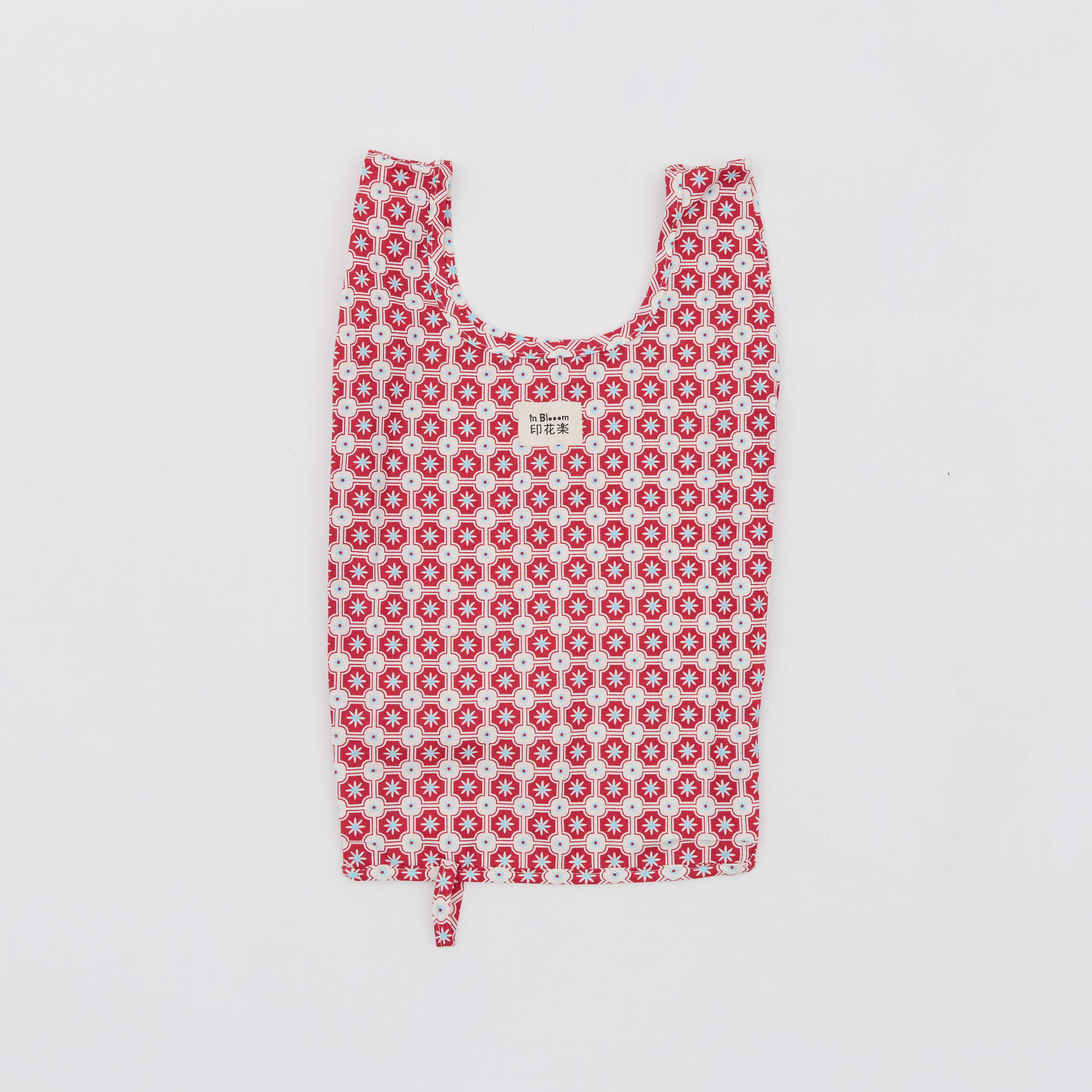 以紅白塑膠袋為原型所設計的背心袋,可以捲起來丟在包包裡,攤開就是一只簡單好用的提袋;輕巧、可以隨手丟東西、隨手掛,拎著出去買午餐、逛超商,設計依然有型。