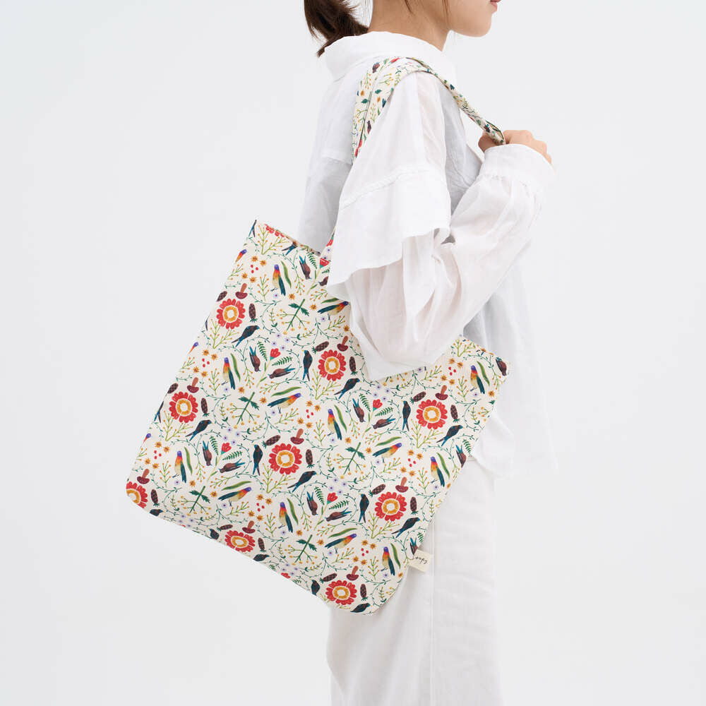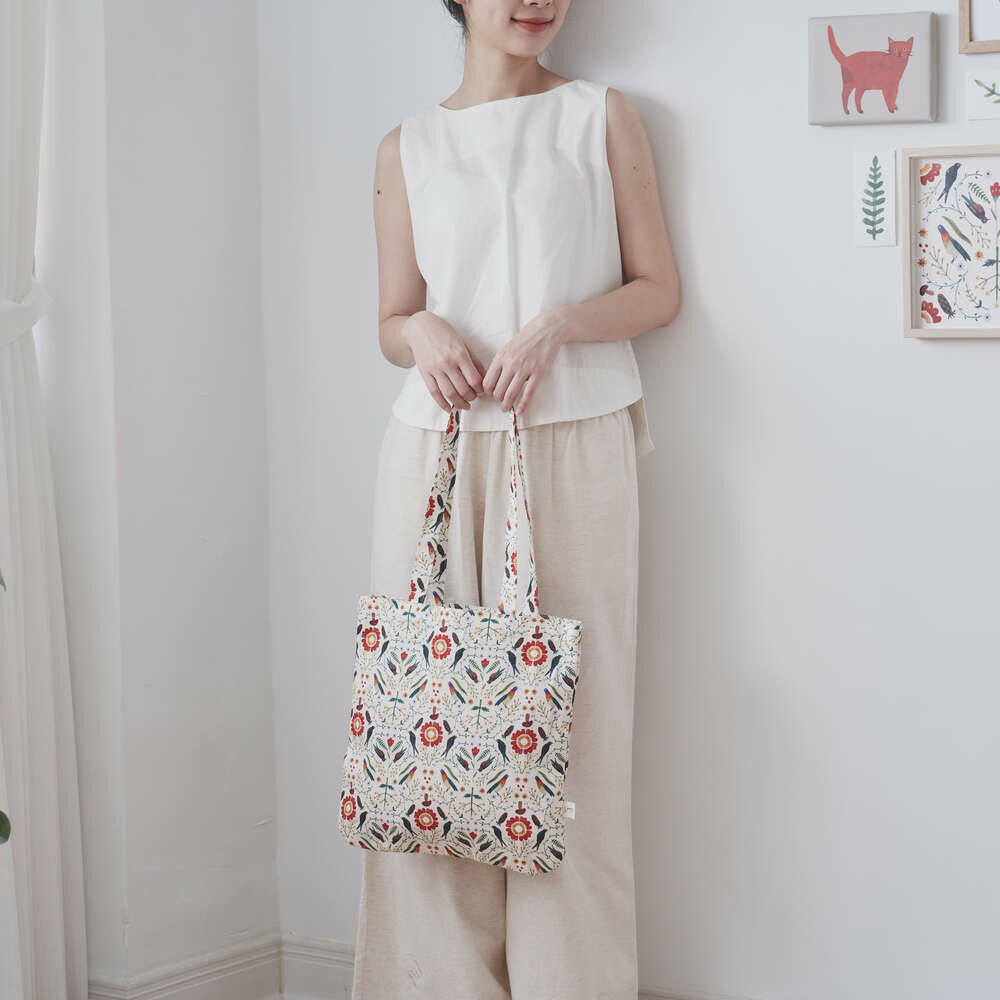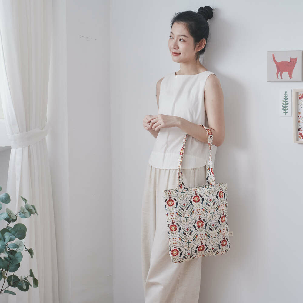 印花樂從經典購物袋版型出發,特別以矩形外型搭配圓潤邊角,大容量空間可放文具、平板等,內裡還有小提袋分層收納。