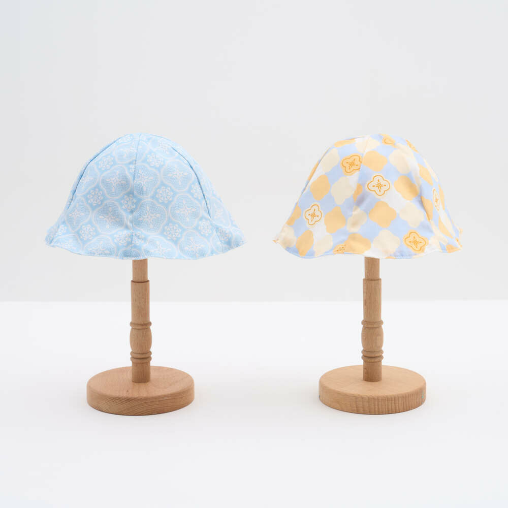 寶寶帽子造型以花瓣為靈感,多片剪接而成的花朵帽型,可以完美包覆頭部,也有寬闊的帽簷遮陽,散發可愛又充滿文藝的風格,適合新生兒寶寶送禮。