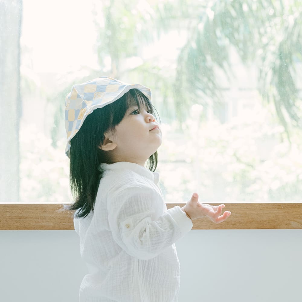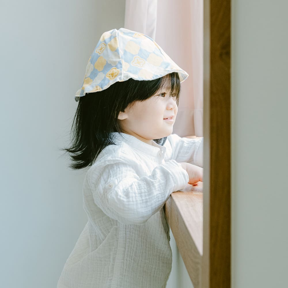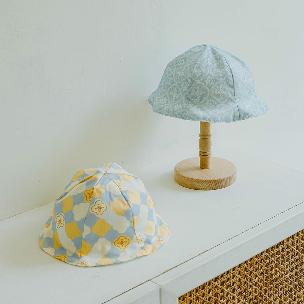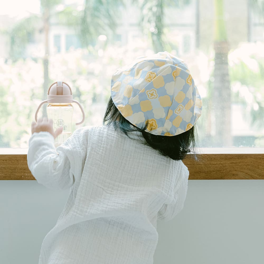 寶寶帽子造型以花瓣為靈感,多片剪接而成的花朵帽型,可以完美包覆頭部,也有寬闊的帽簷遮陽,散發可愛又充滿文藝的風格,適合新生兒寶寶送禮。