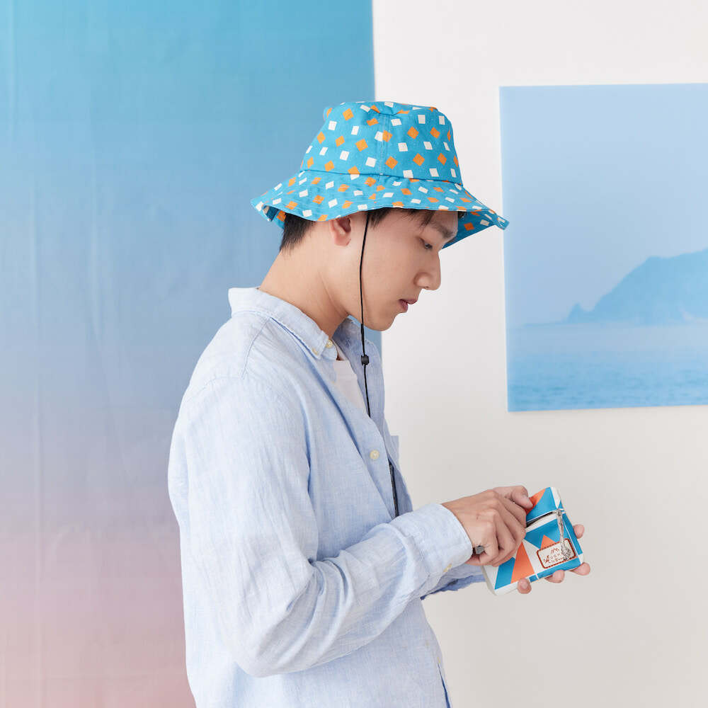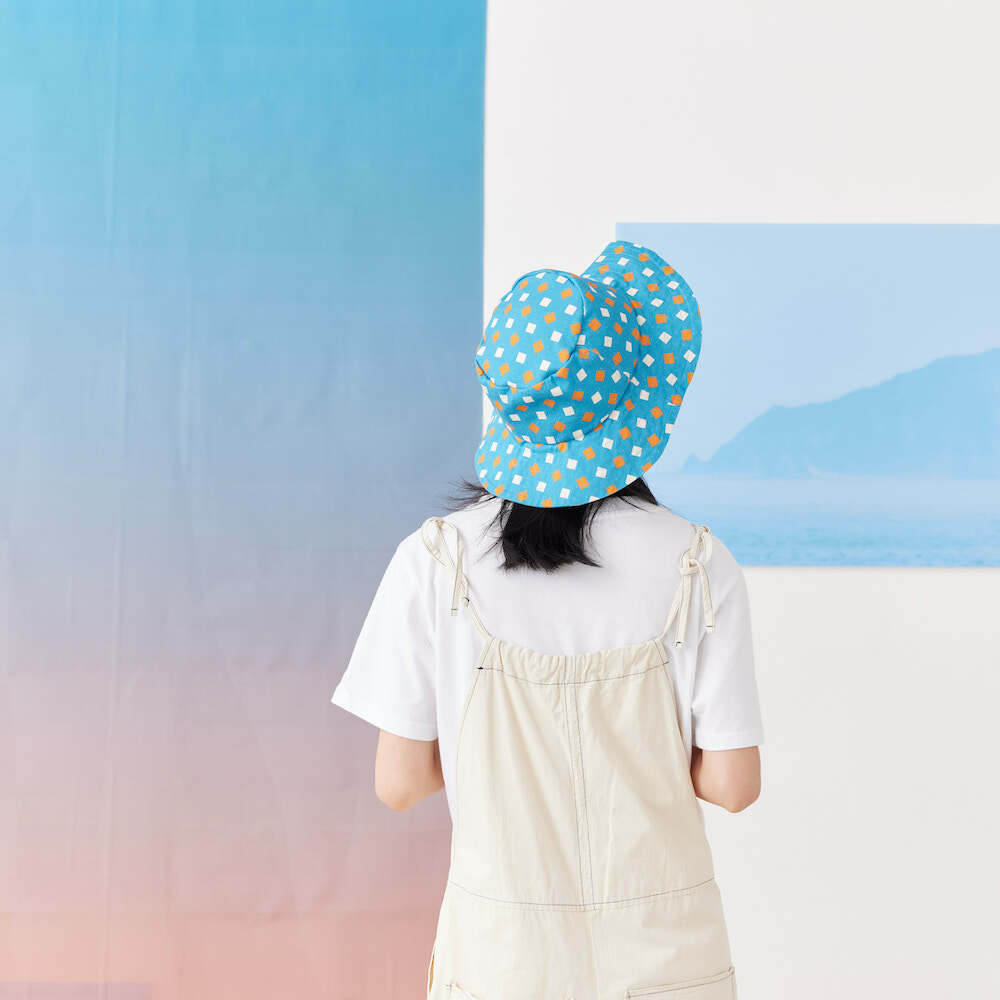 可調式遮陽漁夫帽,以簡約幾何色塊搭配的中性風格,最適合作為登山、出遊穿搭的必備配件!