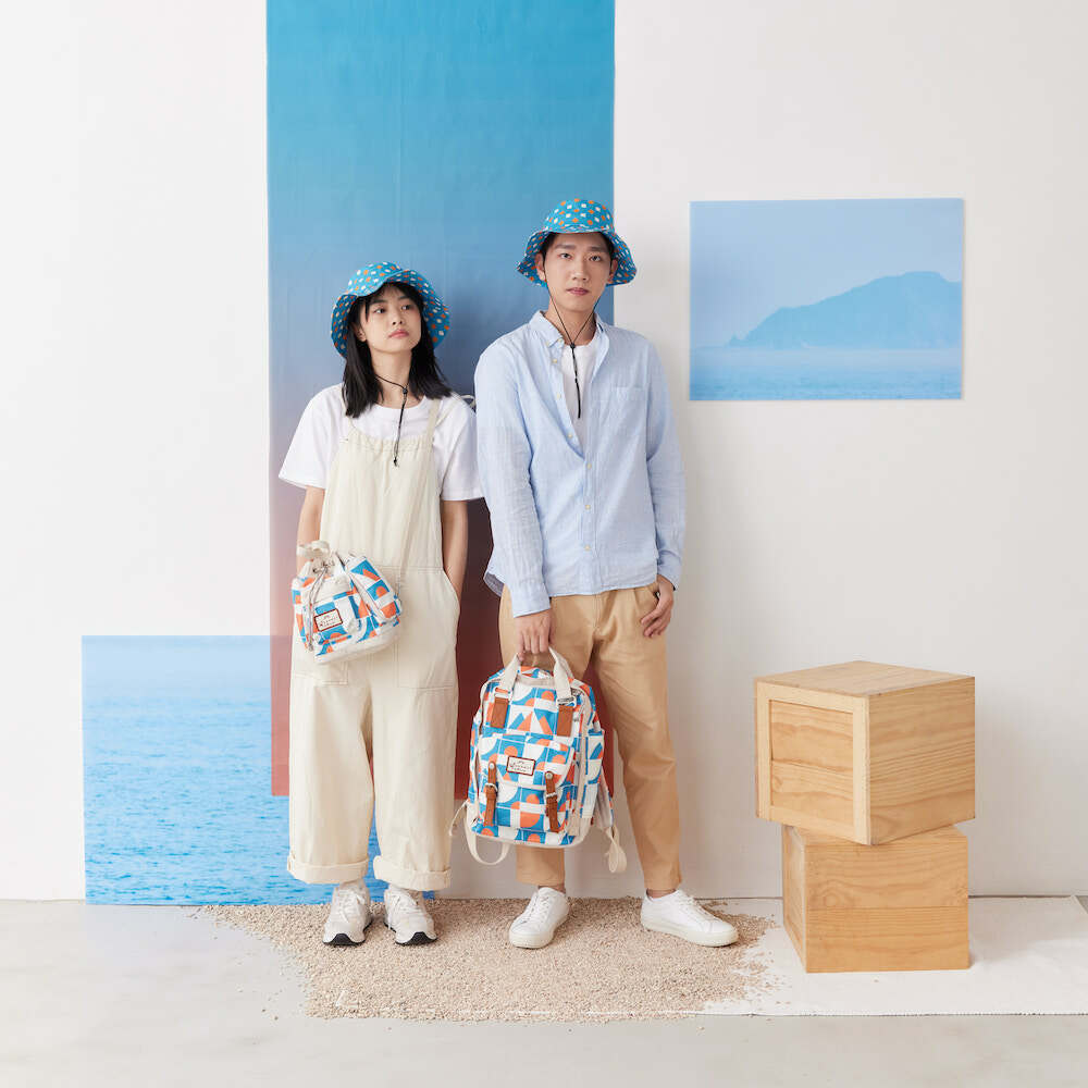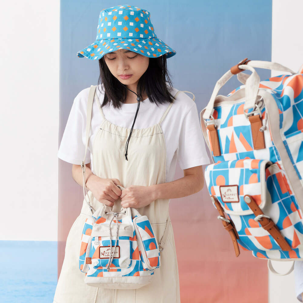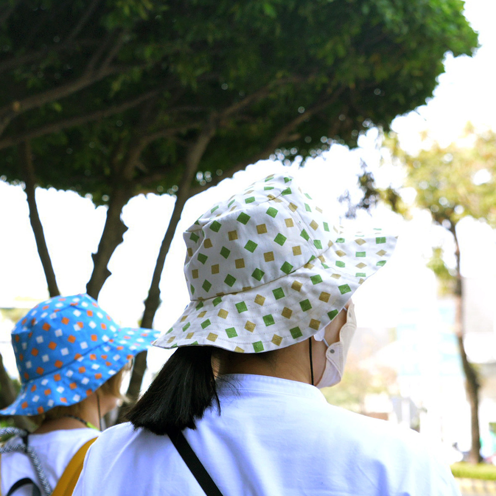 可調式遮陽漁夫帽,以簡約幾何色塊搭配的中性風格,最適合作為登山、出遊穿搭的必備配件!