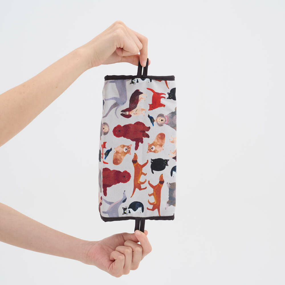 兩端有吊掛用的耳朵,方便掛在廚房、冰箱側面或是門後等家中任何有吊鉤的位置,搭配勾勾背帶就能懸掛在汽車椅背後。