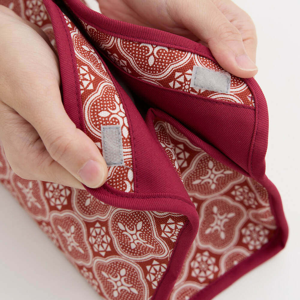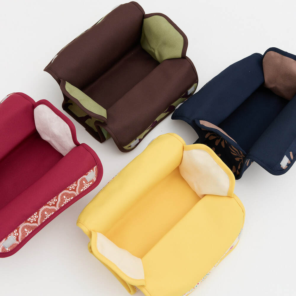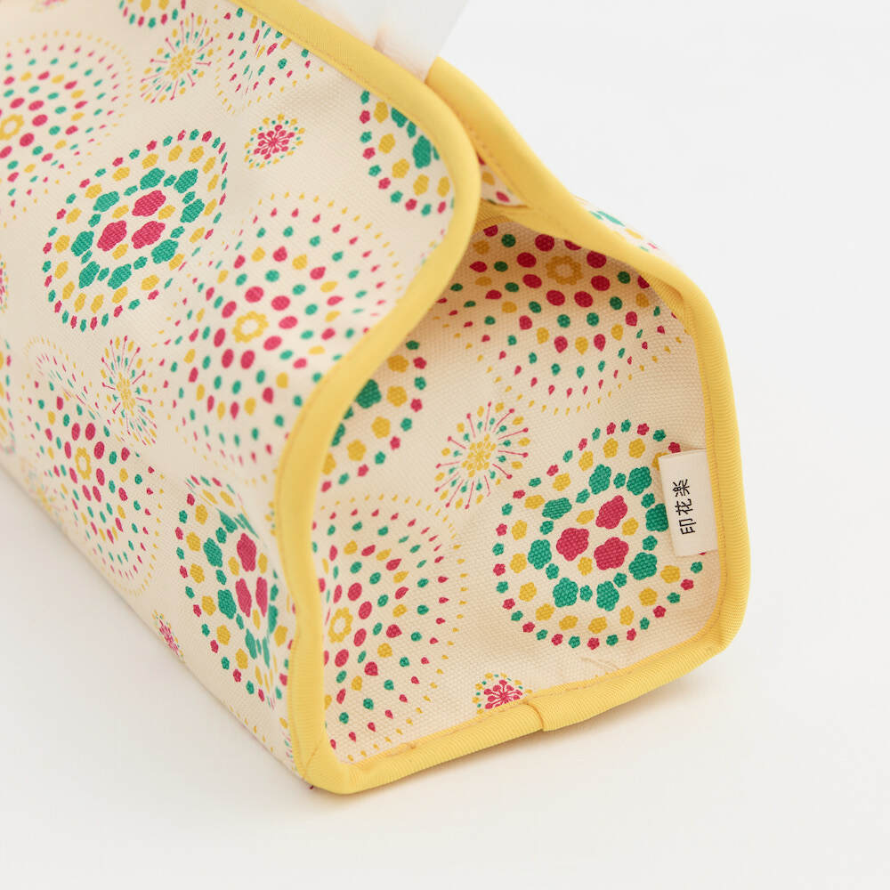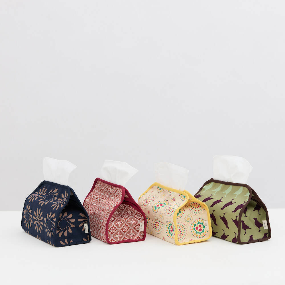 面紙套周邊以車縫加強,讓造型多了顏色搭配變化,也讓整體版型更硬挺,垂直懸掛不變形,即使面紙抽到最後一張也不會因內容物減少而扁塌。