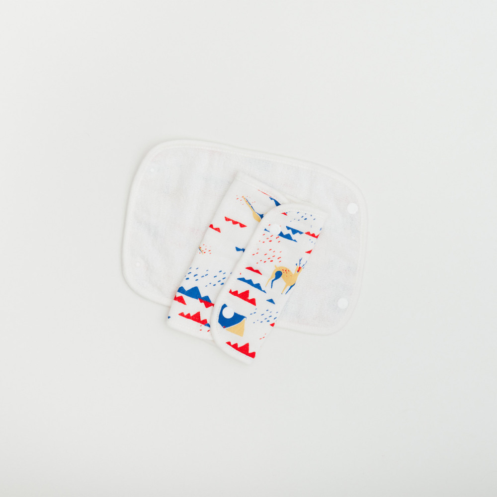 寶寶背帶口水巾可以扣在背帶、揹巾,甚至是嬰兒座椅橫桿上,能防止寶寶咬到背帶受傷。由台灣在地毛巾廠獨家開發的布料,雙層布面設計——一面柔軟棉紗、一面超吸水毛圈組織,整體觸感細緻綿柔,呵護寶寶細緻的肌膚。