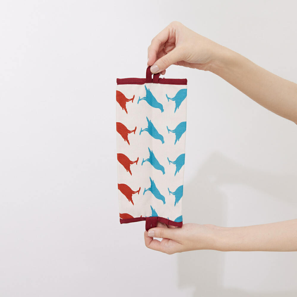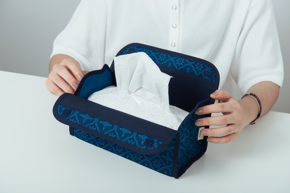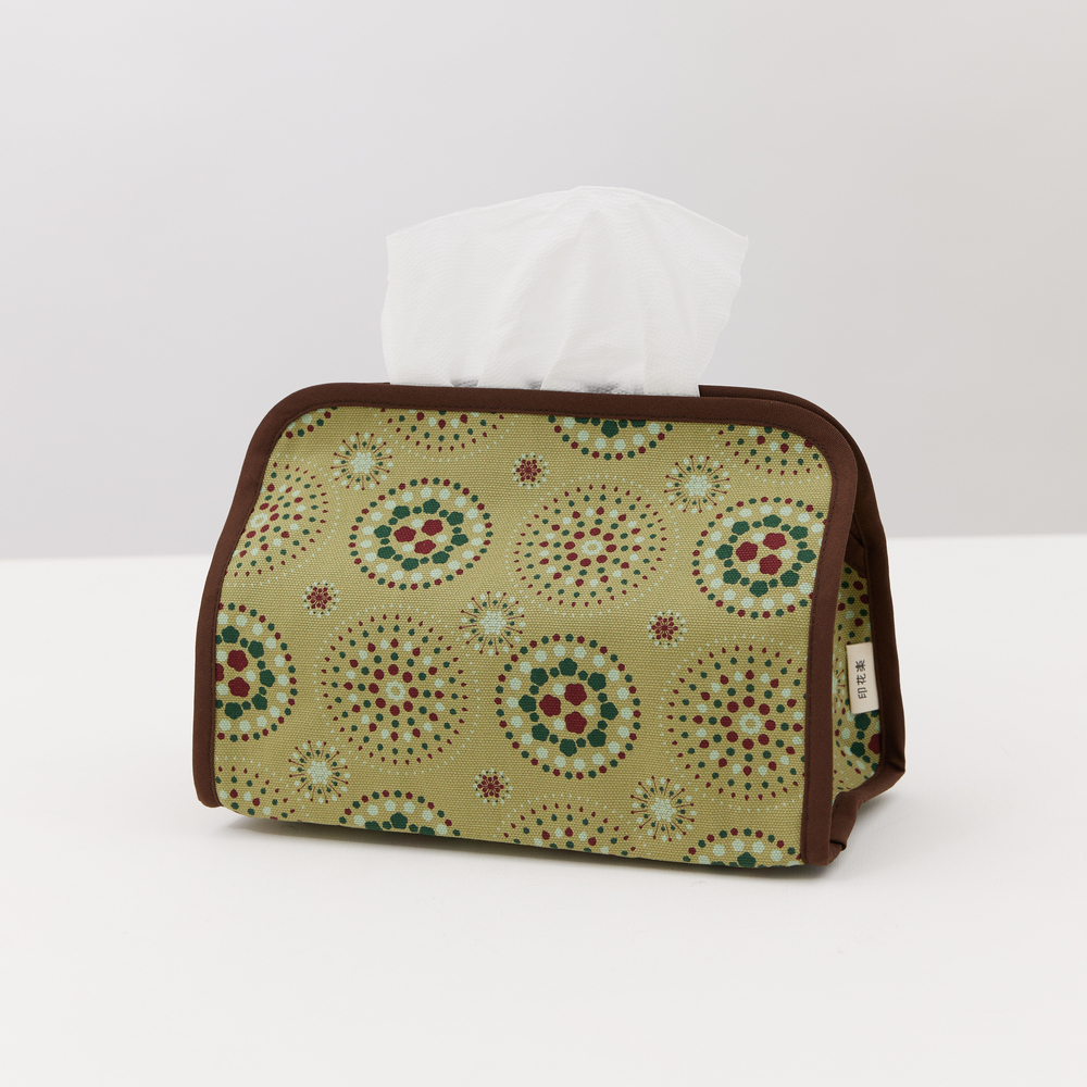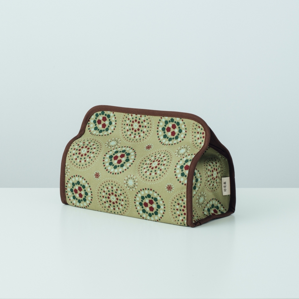 印花樂小屋面紙套,簡單俐落的外型,搭配印花圖案設計,能融入居家環境,成為點綴氣氛的別緻裝飾。兩端有吊掛用的耳朵,方便掛在家中、車上任何有吊鉤的位置,版型硬挺,抽到最後一張也不會因內容物減少而扁塌。