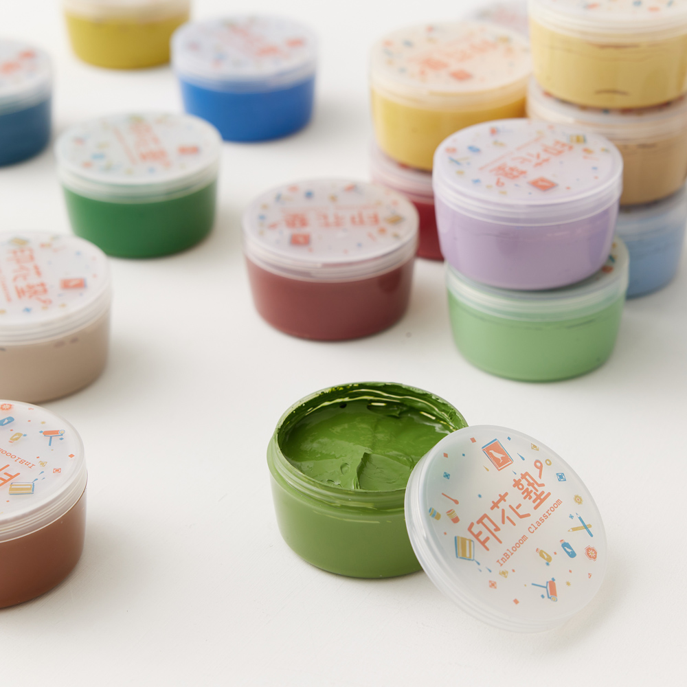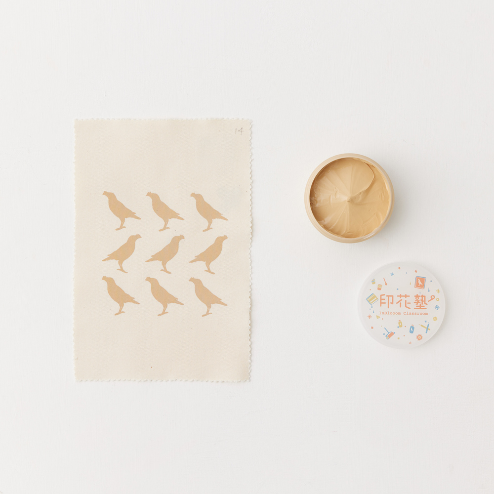 由印花塾獨家調製的印花專用顏料,規格比照印花樂自有商品,適合印製於棉布製品,可水洗不掉色,亦可印製於木板、牆面平整異材質上。