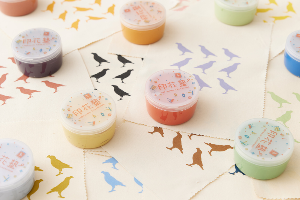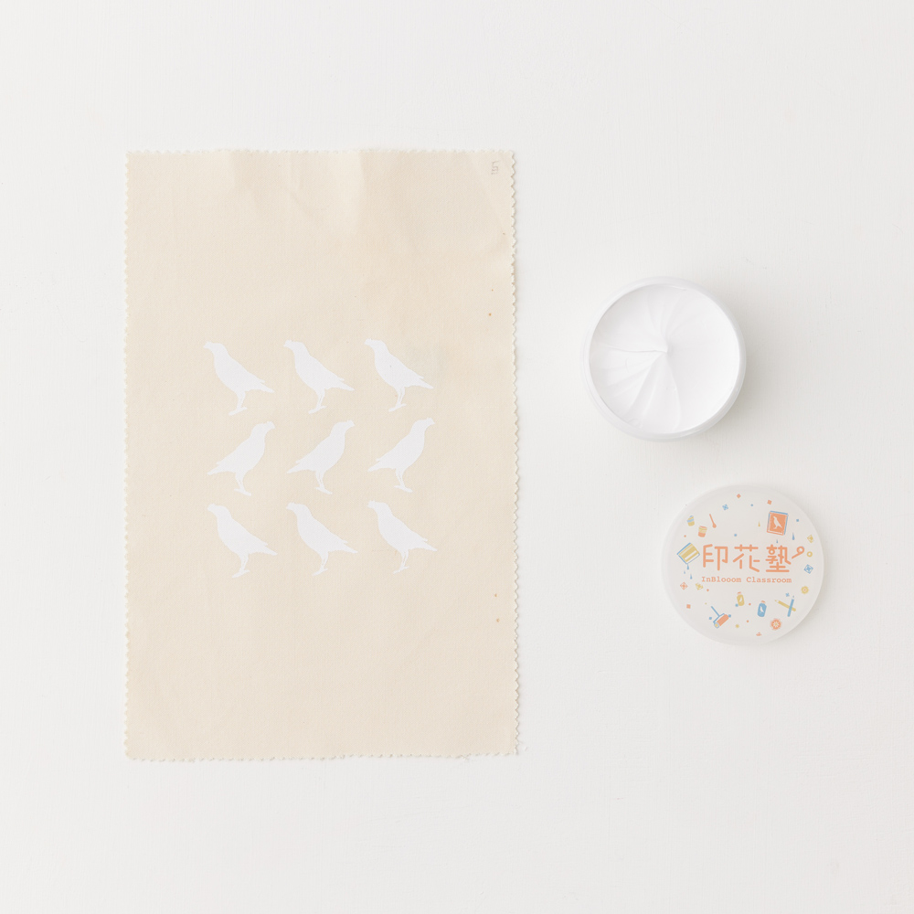 由印花塾獨家調製的印花專用顏料,規格比照印花樂自有商品,適合印製於棉布製品,可水洗不掉色,亦可印製於木板、牆面平整異材質上。