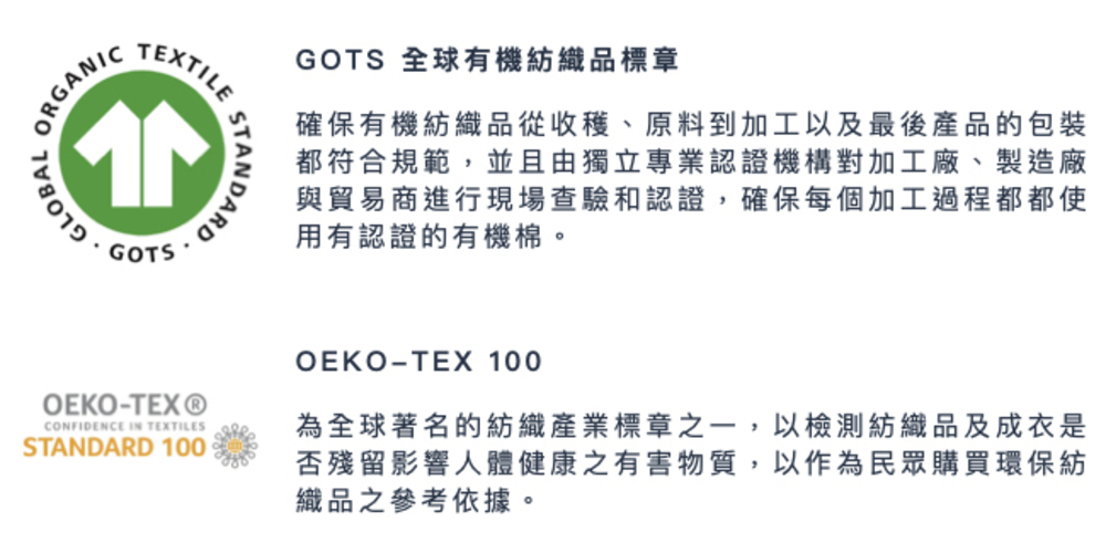 印花樂的有機棉來源,獲得GOTS(全球有機紡織品標章)、OEKO-TEX 100兩大環保認證標章。